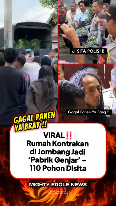 TERUNGKAP! Rumah Kontrakan di Jombang Jadi ‘Pabrik Genjar’ – 110 Pohon Disita, Pria Tersangka Dibekuk!” #narkoboy #ringkus #bekuk #bandar #pengedar