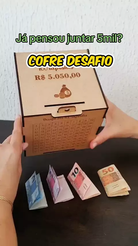 Caixa Cofre Desafio 10000 5000 ou 1000 Mdf Dinheiro Método Japonês Woodbox Cofre de Moedas #maisviews #Miihshop