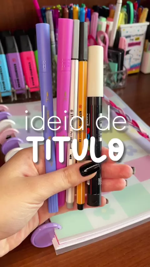 Ideia de título utilizando a combinação de cores roxo e rosa. - Caderno utilizando no vídeo é da PopDisc e nós temos cupom de desconto! 🏷️| CUPOM: MILENA10