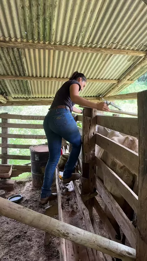 Pra tudo tem jeito, mas mexer com gado sem ajuda é difícil dms e aí é assim também ? #gado #roça #mulher