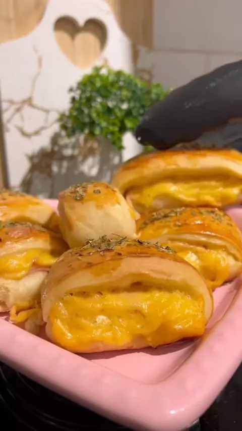 #lanche 1 colher de manteiga,1 ovo 1/2 coler de açúcar, 1/2 xíc de água morna,1/2 colher de sal,1 pacotinho de fermento biológico,2 xíc de farinha de trigo,150g de peito de Peru fatiado,150g de mussarela fatiada, ovo(gema) pra pincelar e soca a massa até desgrudar das mãos e deixa descansar por 30min coloquei a expressaram de 2 dedos e rendeu 16, salgados.180° por 30 min ou até ficar dourado( passe a gema do ovo por cima antes de colocar no forno) #MelhorVideo #Salgado #10k #EstrelaDeFamília
