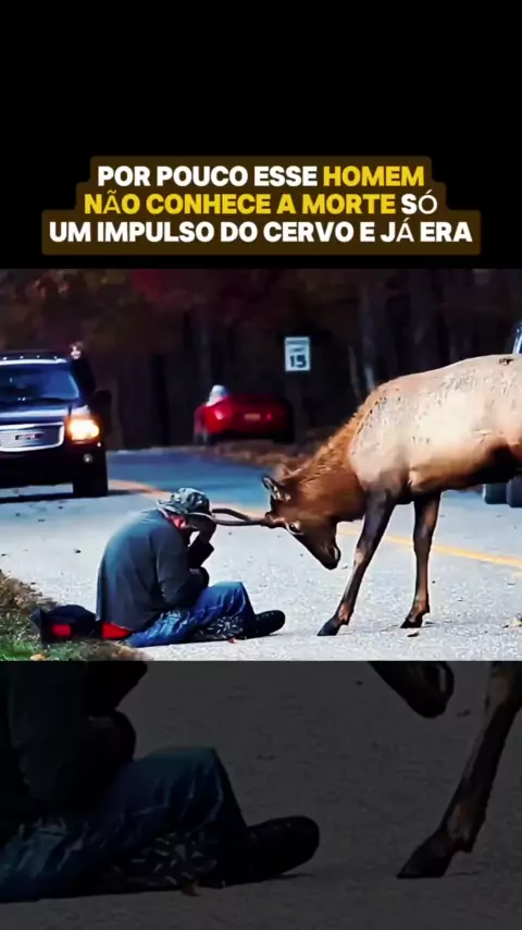 Só faltou um bom impulso pra o cervo fazer o homem conhecer o céu #NarraStars #Natureza #curiosidades #fyp #animais