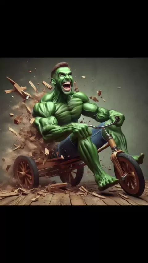 Hulk andando de bicicleta de pau para crianças de divertirem. Infantil #marvel #hulk #kids #niños