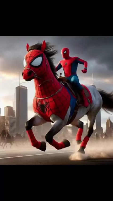 Homem aranha cavalgando com seu cavalo spidercavalo #spiderman #desenhoanimado #niños