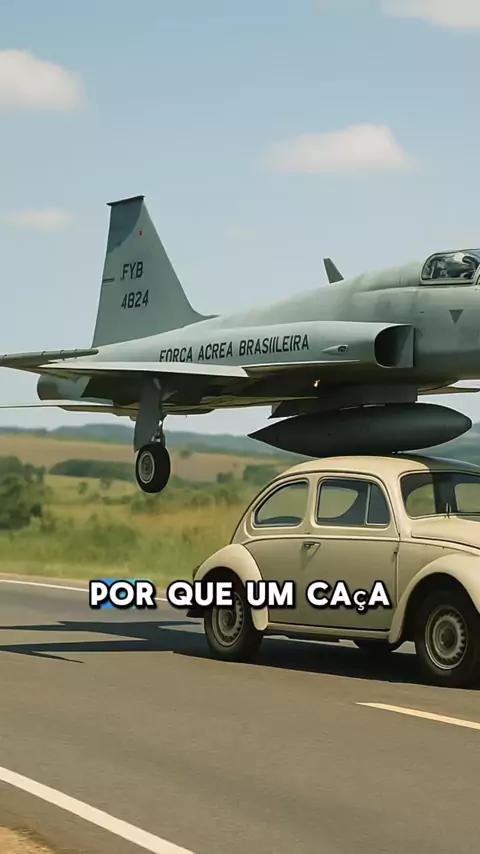 O dia em que um Fusca entrou na rodovia… e encontrou um caça F-5 descendo dos céus! Uma cena inacreditável que virou história da aviação brasileira. #FuscaBege #AviaçãoMilitar #HistóriaBrasileira #F5Tiger #CuriosidadesReais
