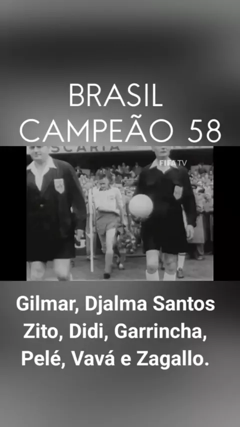 #Copa58 Brasil Campeão. Relação dos Jogadores: Gilmar; Djalma Santos, Bellini, Orlando e Nilton Santos; Zito e Didi; Garrincha, Pelé, Vavá e Zagallo.
