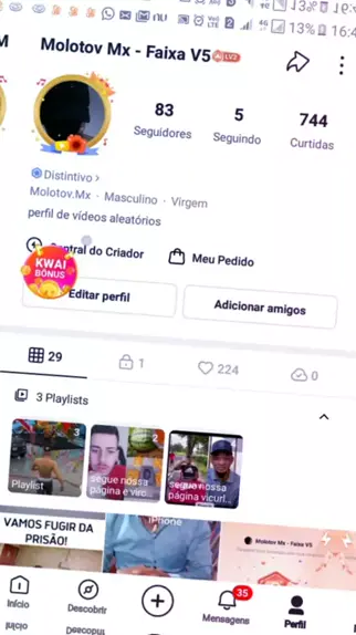 perfil de vídeos aleatórios