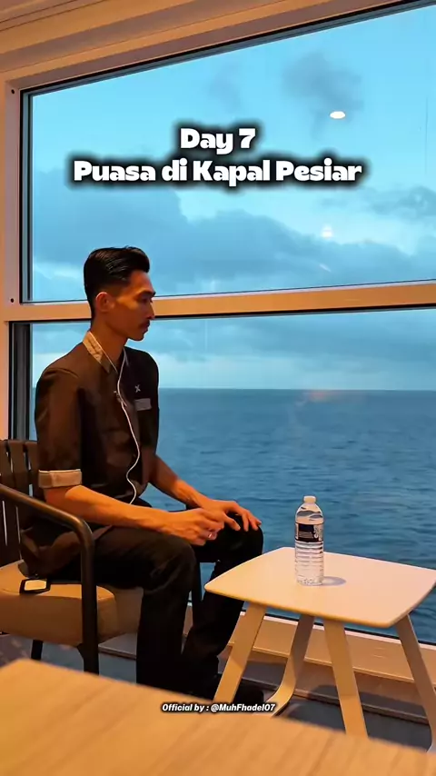 Buka puasa pakai air minum, sambil menikmati indah ny view laut menjelang malam yang langit nya di selimuti sedikit awan tebal #muhfhadel07 #ramadan2026 #bismillahberkah #kapalpesiar ゚