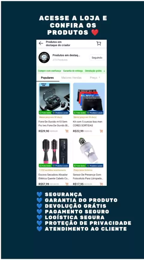 💙 Não perca tempo! Visite a loja agora e encontre o produto perfeito para você. Obs: Clique no carrinho acima da Playlist 😍! #viraliza #vendasnokwai #produtos #melhoresprodutos #vendas