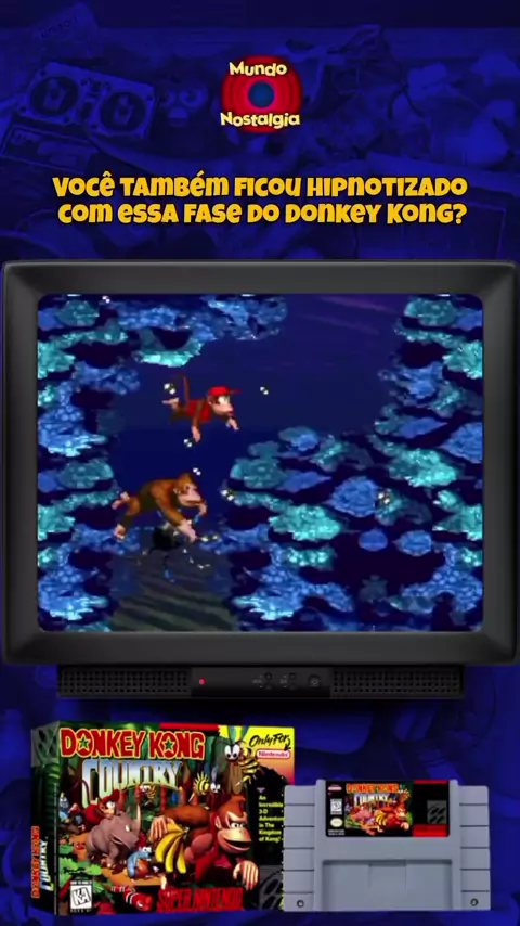 Essa fase aquática era um respiro calmo no meio da adrenalina do jogo… mas quem aí também se perdia nadando e tomando choque dos peixes? #DonkeyKong #SuperNintendo #MundoNostalgia