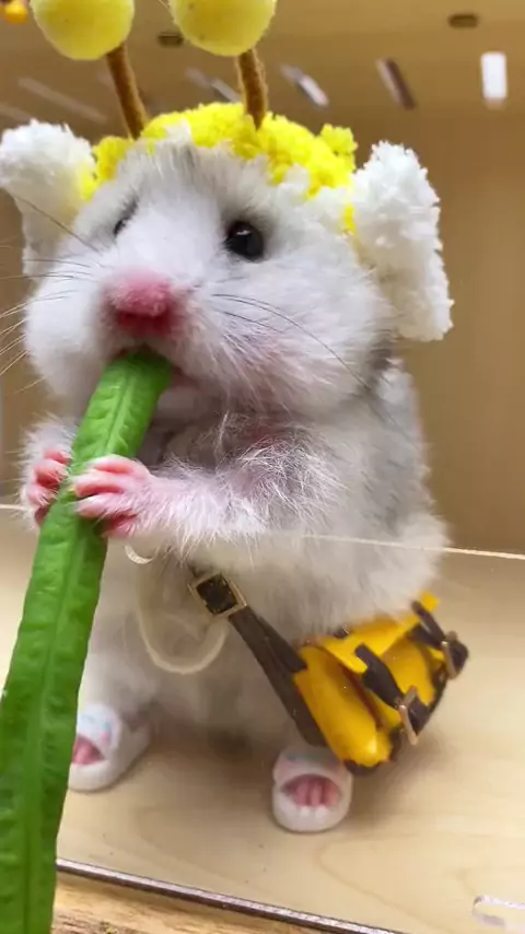 "Um ratinho estiloso com roupinha e chinelo, aproveitando suas verdurinhas! 🐭🥬💖 Tem como não se apaixonar por tanta fofura? #RatinhoFofo #FofuraAnimal #PetsAdoráveis