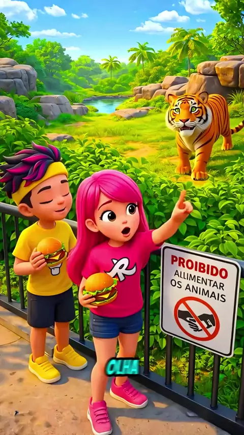 Eles deram comida pro tigre! 😯🐯 Emilly Vick 💗✨ Leozinho 💡💛 Ketlen 💜🚀 #CarnaKwai #maisviews #ia #desenho #animação