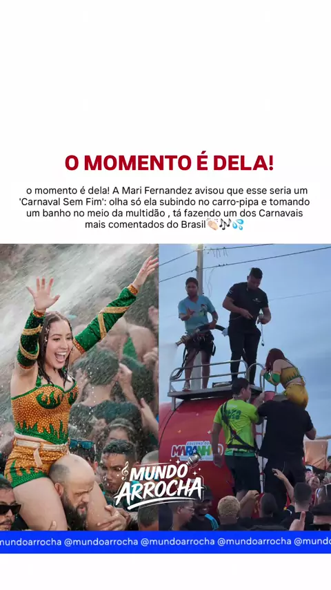 o momento é dela! A Mari Fernandez avisou que esse seria um 'Carnaval Sem Fim": olha só ela subindo no carro-pipa e tomando um banho no meio da multidão, tá fazendo um dos Carnavais mais comentados do Brasil #realmeC85Carnaval #MariFernandez #Carnaval #Arrocha