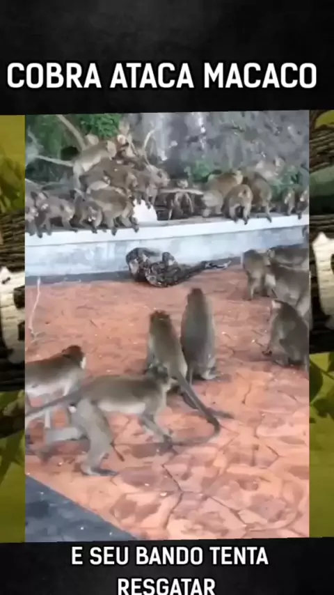 cobra gigante ataca macaco e seu bando tenta resgatar. #macaco #animais #africa #cobra #ataque
