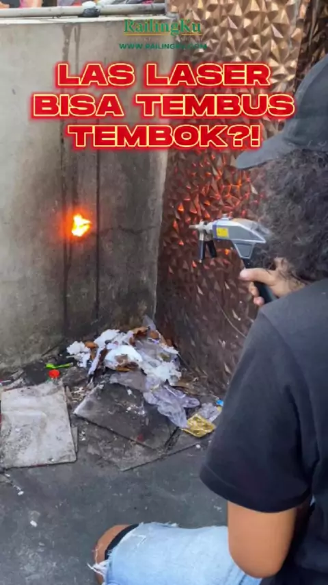 mesin laser ini bisa tembus tembok setebal 30 cm guys! jadi hati-hati dalam penggunaannya 😱 #railingku #railingkuproject #laslaser #welder #tembakanlaser
