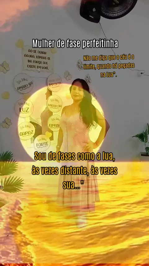 Tenho fases como a lua", "A vida é dividida em fases, como a lua", "Assim como a Lua, sempre estou em fase de transformação", e "A vida não é feita de tempo, mas de fases", transmitindo a ideia de mudança, beleza, mistério e resiliência. Sou de fases como a lua, às vezes distante, às vezes sua…" Não me diga que o céu é o limite, quando há pegadas na Lua".