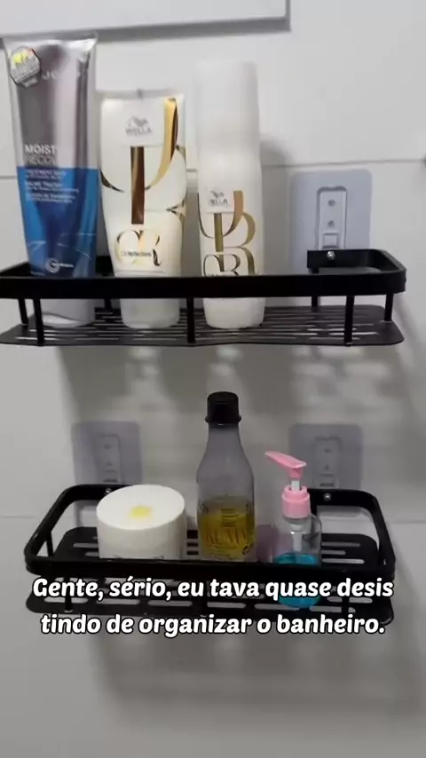 Adeus, bagunça no banheiro! Prateleiras que grudam e transformam seu espaço ✨ #organizacaobanheiro #prateleirassemfuro #banheiroorganizado #decoracaobanheiro #casaorganizada