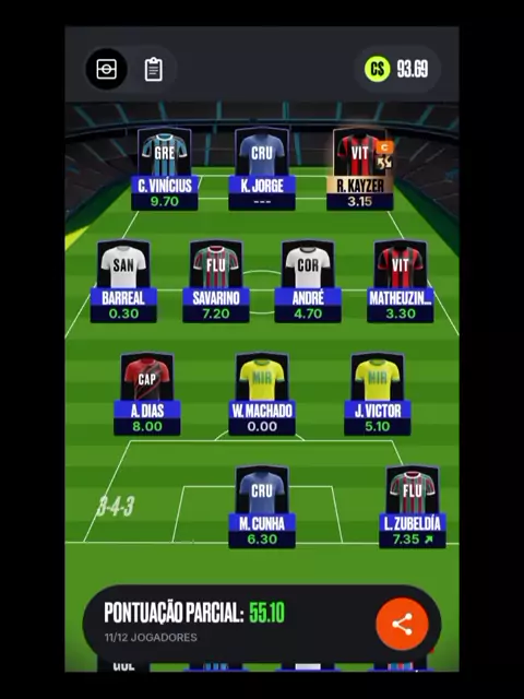 Minha pontuação do time do brasileirão série a no Cartola FC. #NILTONESPORTES10 #brasileiraoseriea #cartolafc #futebol