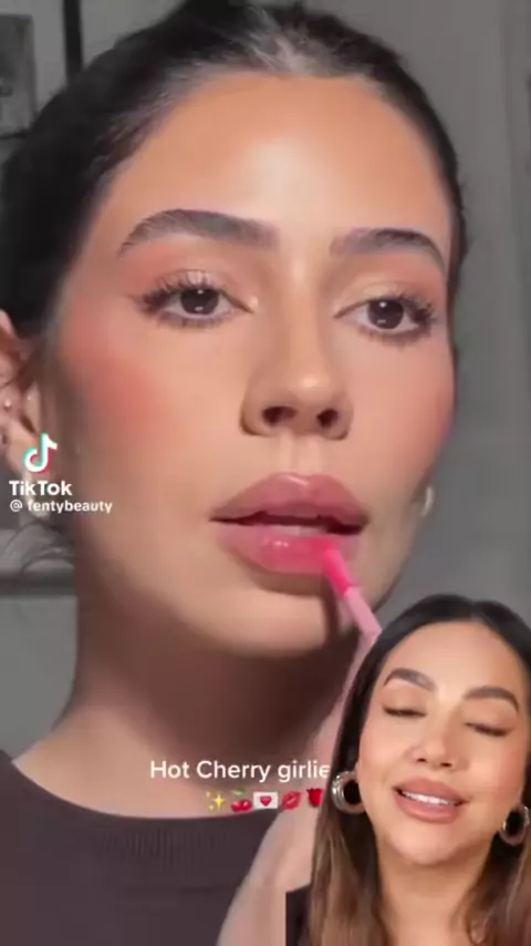 Cherry lips w @Fenty Beauty 🍒🌸 El gloss ademas de ser bello te hincha los labios un monton!! #fentybeauty #fentygloss #fentyglossbomb #cherrylips #virallips