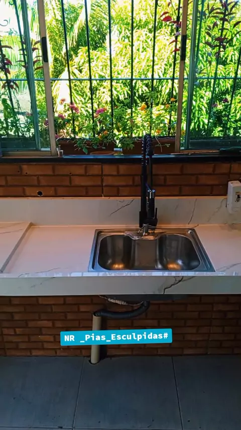 Beleza e praticidade em cada detalhe! 😍 Essa pia em porcelanato é perfeita pra quem busca um toque sofisticado e fácil de limpar. O que acharam? 👇 #Decoração #Reforma #CasaDecorada #PiaModerna#PiaPorcelanato #CozinhaModerna