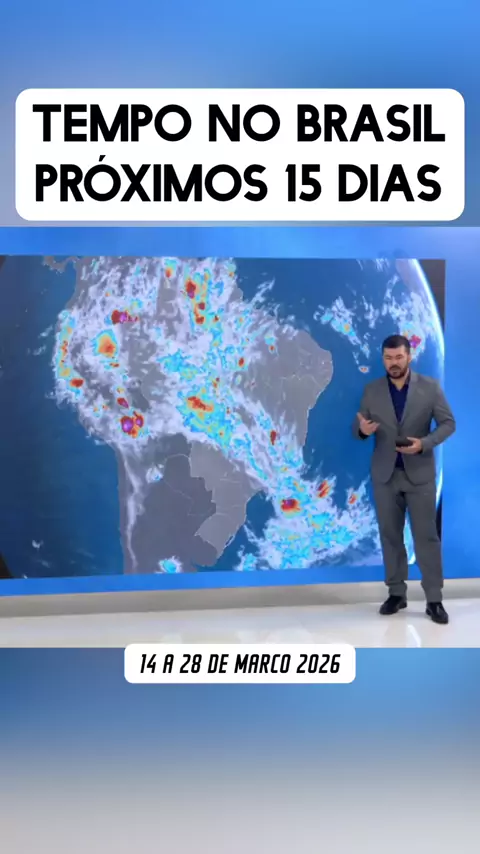 Previsão do tempo no Brasil nos próximos 15 dias, de 14 a 28 de março de 2026, corredor de umidade leva chuvas para Sudeste e Centro-Oeste. #ultimasnoticias #PrevisãoDoTempo #clima #brasil15dias