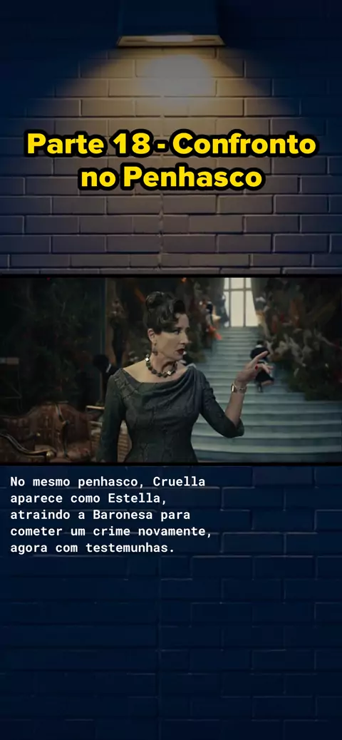 Parte 18 #Cruella No mesmo penhasco, Cruella aparece como Estella, atraindo a Baronesa para cometer um crime novamente, agora com testemunhas.