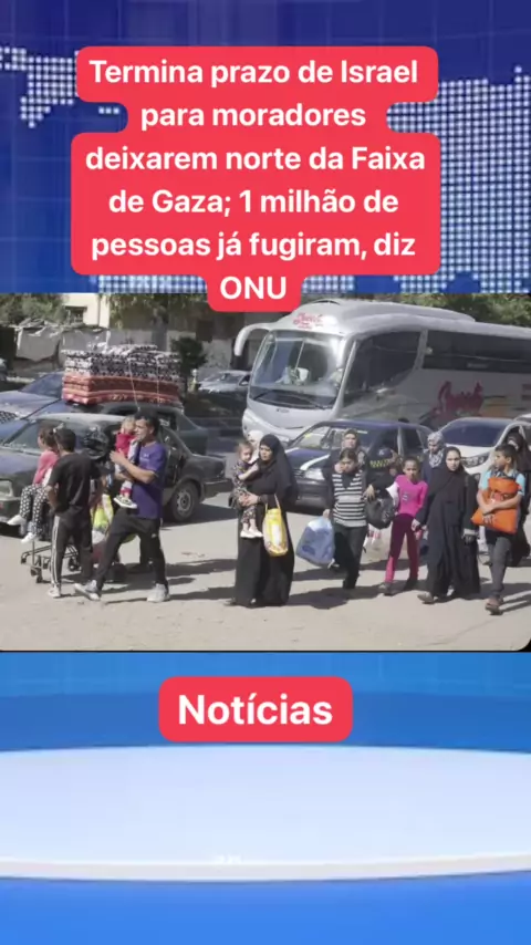 Termina prazo de Israel para moradores deixarem norte da Faixa de Gaza; 1 milhão de pessoas já fugiram, diz ONU #noticias