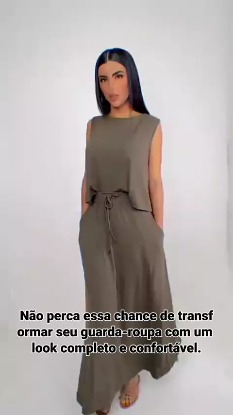 Look completo e confortável? Encontrei o conjunto perfeito para você! #modafeminina #lookdespojado #conjuntosaiaeblusa #estiloeconforto #roupasversateis