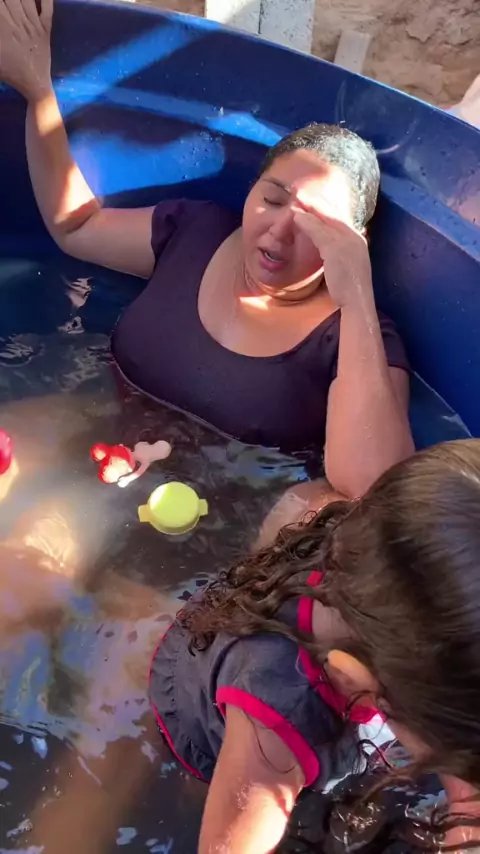 Olha nossa piscina