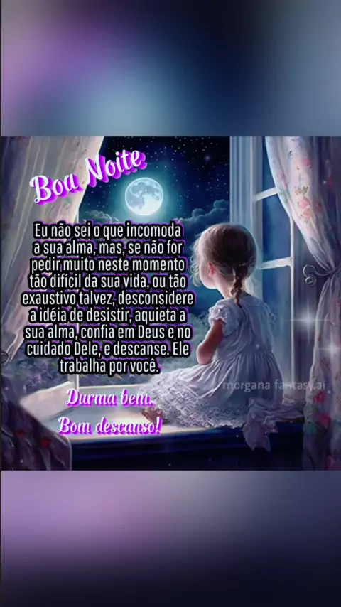 #BoaNoite Eu não sei o que incomoda a sua alma, mas, se não for pedir muito neste momento tão difícil da sua vida, ou tão exaustivo talvez, desconsidere a idéia de desistir, aquieta a sua alma, confia em Deus e no cuidado Dele, e descanse. Ele trabalha por você. Durma bem. Bom descanso! #CANTINHODANANNY🌹 #Ultra10kvis #sejacriador #Deusnocomando🕊️
