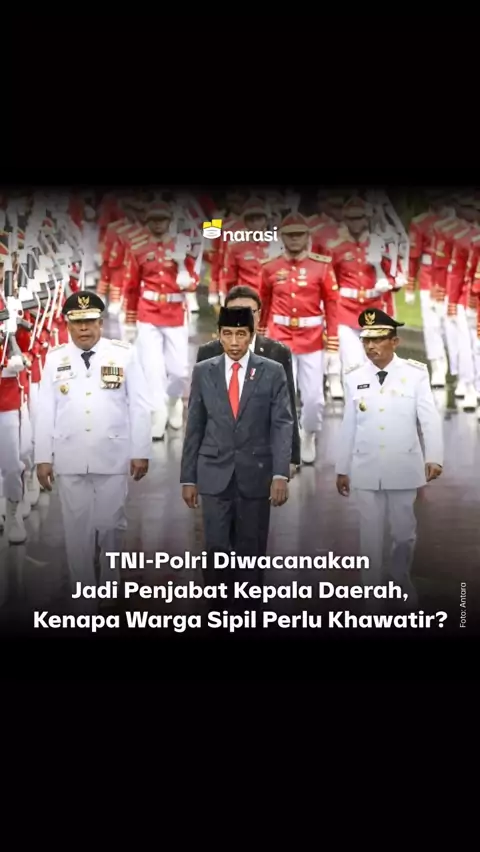 ⁣⁣⁣Munculnya wacana perwira TNI-Polri jadi pejabat kepala daerah bikin gaduh di media sosial dan menuai kritik dari berbagai kalangan. Sebab wacana ini mengingatkan kembali soal Dwifungsi angkatan bersenjata yang penah diterapkan pada masa Orde Baru. ⁣⁣Saat itu, angkatan bersenjata menjalankan perannya sebagai kekuatan pertahanan di Indonesia sekaligus menjalankan tugas sebagai pengatur negara.⁣⁣Tapi belakangan, kebijakan ini diketahui membawa dampak buruk berupa dominasi militer atas warga sip...