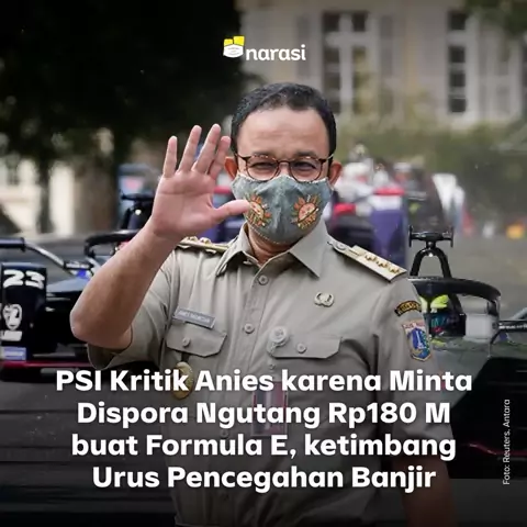 Baru-baru ini, Wakil Ketua Komisi E DPRD DKI Jakarta Fraksi PSI Anggara Wicitra Sastroamidjojo menyebut Pemprov DKI Jakarta lebih memprioritaskan Formula E ketimbang banjir.Menurut Anggara, Gubernur DKI Jakarta Anies Baswedan pernah memberikan kuasa kepada Kepala Dinas Pemuda dan Olahraga DKI Achmad Firdaus untuk pinjam uang ke Bank DKI demi membiayai perhelatan Formula Electric Championship atau Formula E di Ibu Kota.Sementara pada saat yang sama Anies disebut membatalkan anggaran pembebasan t...
