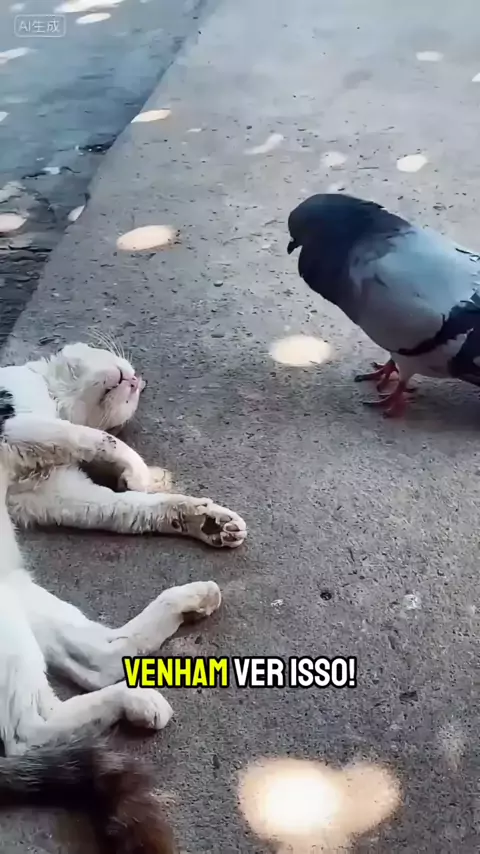 #Documentário #educação #informaçao #NarraStars olha só esse pombo brincando com esse gatinho