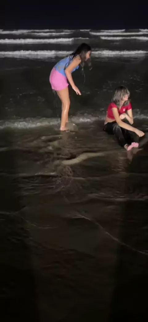Nicoly entrou na praia de roupa e tudo!#nikefamilia