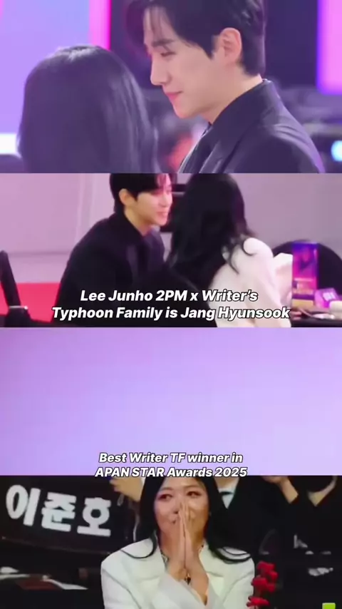 For those of you who are curious, who is the woman busy chatting with Junho? Yes, that woman is the writer of the drama Typhoon Family. Let’s introduce Mrs Jang writernim TF😊…. Congrats best writer TF, thank you Thank you for accepting and bringing Junho into the drama TF until it finally became a success. I wish the writer be success, see you next time😍#eejunho#2pm#junho#typhoonfamily#apanstarawards