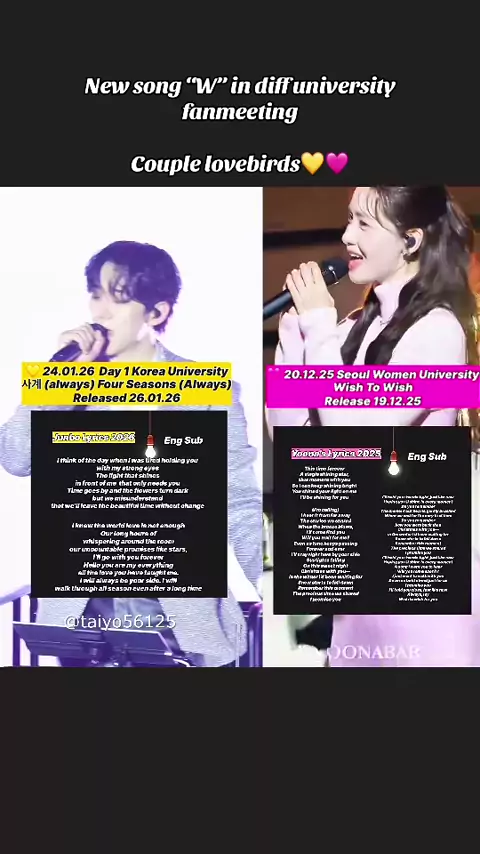 Congrats for new song my yoongnuneo’s lovebirds. Hopefully be successfull and shine more always : Four seasons (always) x Wish to wish on fanmeeting seoul. Blur pict text? You can see full on my HL yoonho’ song 😍🤗#junhoyoona#fourseasons#wishtowish#koreauniversity#womenuniversity