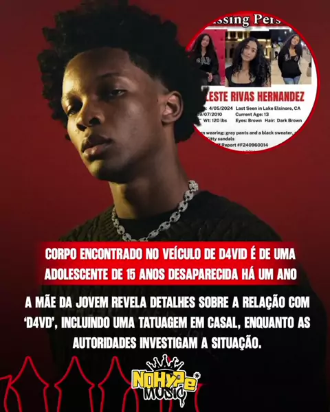 A polícia de Los Angeles encontrou o corpo da jovem Celeste Rivas, 15 anos, dentro de um Tesla registrado em nome de D4vd. A família liga o caso ao cantor, mas nada foi confirmado. Não há acusações formais, e ele cancelou um show, declarando cooperação. Mesmo assim, segue confirmado no Lollapalooza Brasil 2026. ➡️ Segue o @nohypemusic pra acompanhar todos os desdobramentos dessa polêmica 👊🎶 #D4vd #Celeste #Polêmica #Investigação #NoHypeMusic