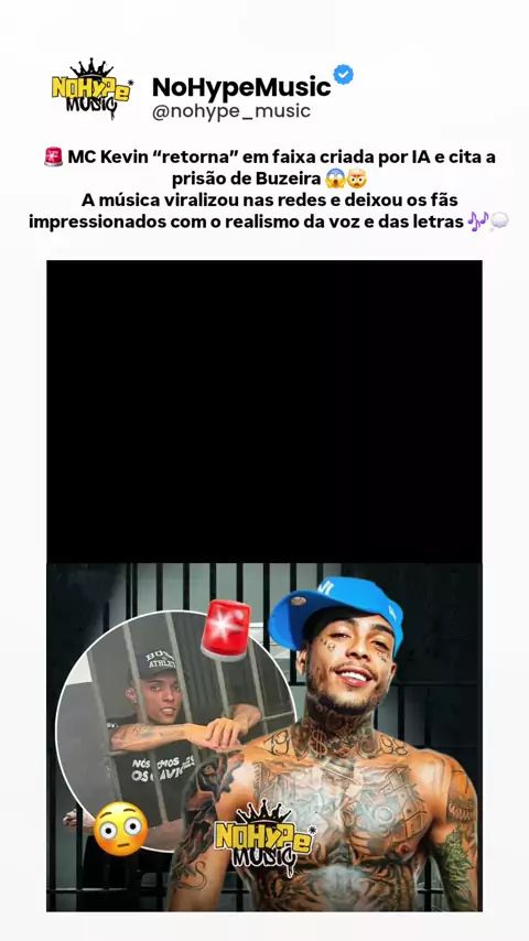 🚨 MC Kevin “retorna” em faixa criada por IA e cita a prisão de Buzeira 😱🤯 A música viralizou nas redes e deixou os fãs impressionados com o realismo da voz e das letras 🎶💭 ➡️ Segue o @NoHypeMusic pra ficar por dentro de tudo 👊✨ #McKevin #Buzeira #InteligenciaArtificial #TrapBR #FunkSP