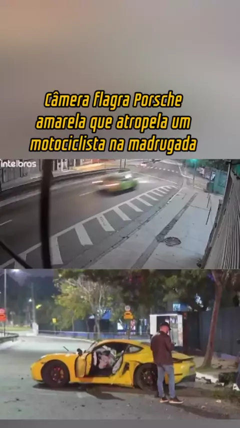 Câmera flagra Porsche amarela que atropela um motociclista na madrugada #acidente #câmera #porsche #fatalidade #motociclista