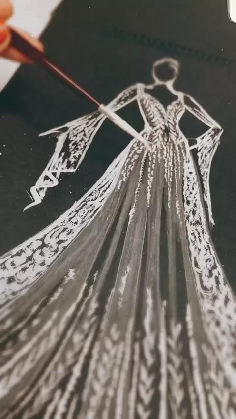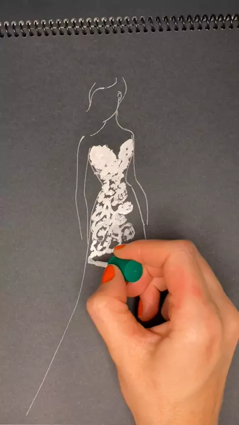 Desenho lápis branco em folha preta, tutorial, #tutorial #desenho #aprendaadesenhar #estilista #designer