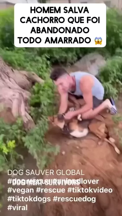 Homem salva cachorro que foi abandonado todo amarrado #Notícia #kwai