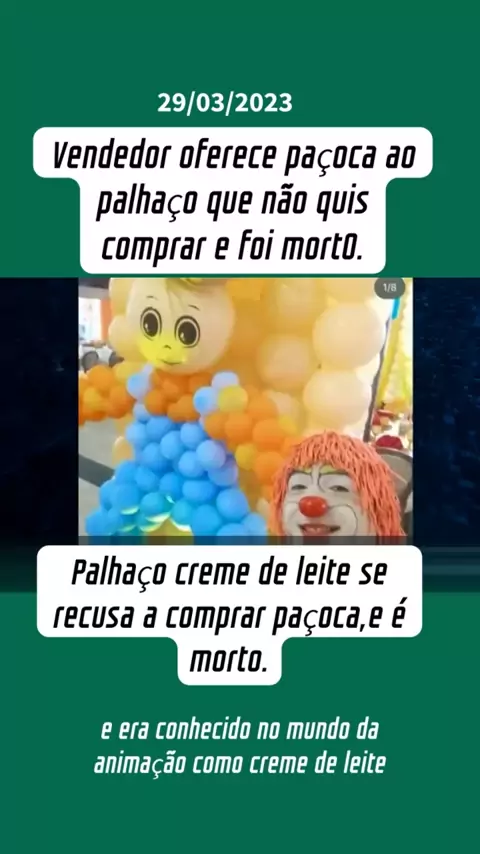 O caso aconteceu no último domingo dia 26 de março na cidade de Manaus (AM),o palhaço conhecido como creme de leite estava em um bar quando o vendedor ambulante chegou a oferecer paçoca e cocada, o palhaço então se recusou,os dois discutiram o vendedor então o matouu. #noticias #familia