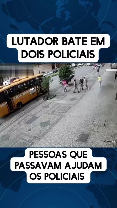 Lutador bate em dois policiais, pessoas que passavam tiveram que ajudar os policiais a conter o homem #policia #policiais #lutador #New #noticias