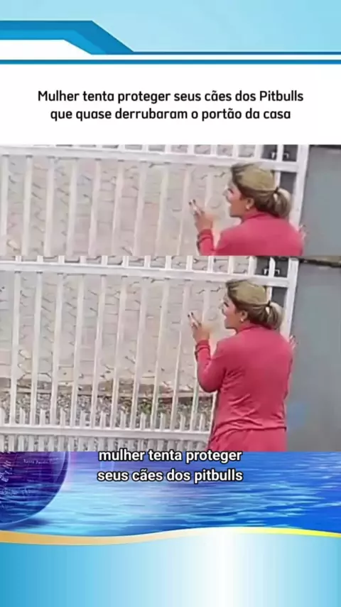 Mulher tenta proteger seus cães dos pitbulls que quase derrubaram o portão da casa. #crimes #News #cães #noticias #pitbull