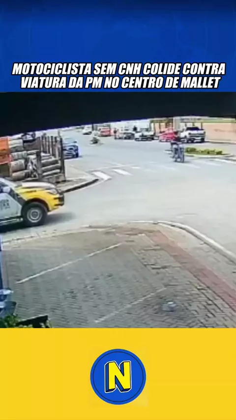 Motociclista sem CNH colide contra viatura da PM no centro de Mallet #kwainoticia #ultimasnoticias