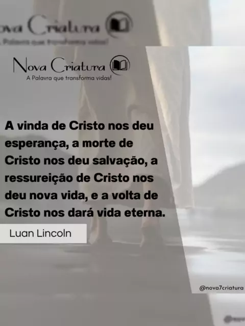 A PALAVRA que transforma vidas! 📖 Aqui tem conteúdo Bíblico: ➡️ Músicas ➡️ Reflexões ➡️ Mensagens ➡️ Estudos ➡️ Curiosidades 👉 Instagram: @nova7criatura