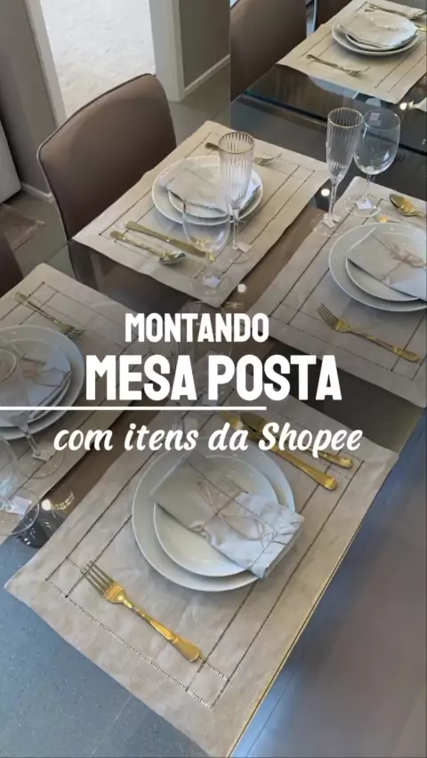 ✨️Montando mesa posta com itens da Shopee 😍😍 Mesa posta, aparelho de jantar, jarra de vidro,talheres douradas, dona de casa. #Mesa #aparelhodejantar #jarradevidro #talheresdourados #donadecasa