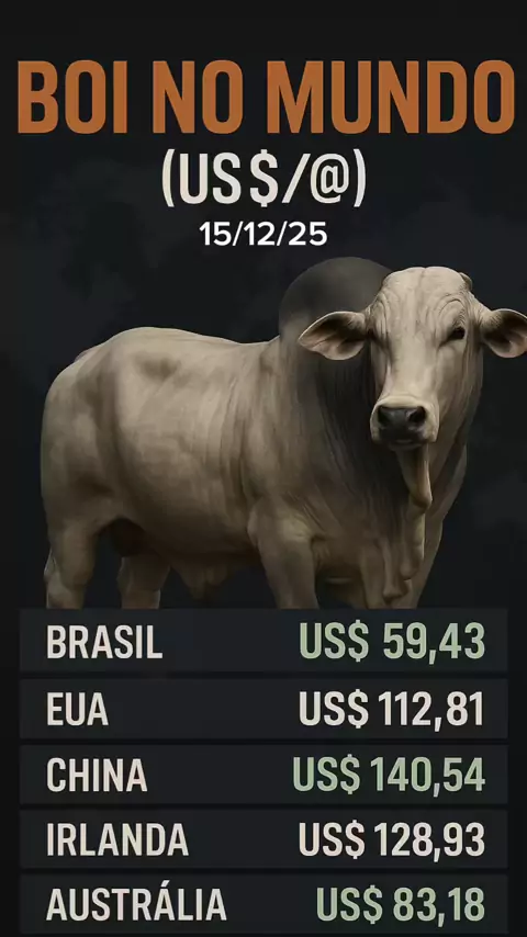 O boi brasileiro é o mais barato entre os grandes produtores do mundo — em dólar. Enquanto EUA, China e Europa pagam mais de US$ 100 por arroba, o Brasil segue vendendo a US$ 59. Preço baixo não é vantagem. É alerta para o produtor. #MercadoDoBoi #Pecuária #AgroBrasil