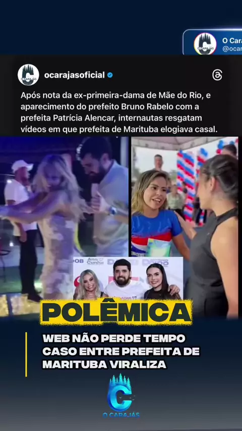 Após a divulgação de uma nota pública da ex-primeira-dama de Mãe do Rio, na qual ela afirma que um relacionamento extraconjugal teria sido o motivo da separação, novos desdobramentos passaram a repercutir nas redes sociais. Isso porque, nos últimos dias, o prefeito de Mãe do Rio, Bruno Rabelo, foi visto publicamente ao lado da prefeita de Marituba, Patrícia Lencar, o que intensificou comentários e especulações entre internautas. Com a repercussão do caso, usuários das redes sociais passaram a re