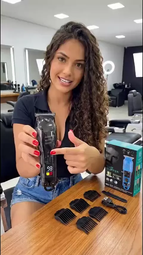 Máquina De Cortar Cabelo Profissional Smart Lcd Barbeador Elétrico Transparente Sem Fio